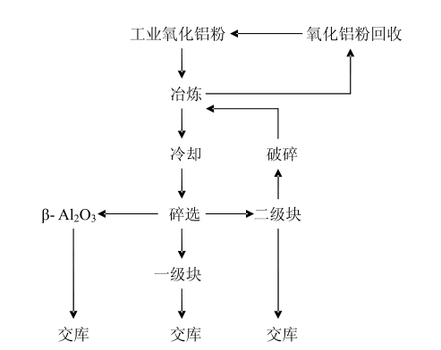 由此可見,電熔白剛玉的生產要嚴格控制氧化鈉的含量,一般通過選用低鈉氧化鋁粉做原料,增加促進Na2O揮發(fā)的輔助材料進行冶煉來實現(xiàn)。具體的冶煉工藝如下圖: