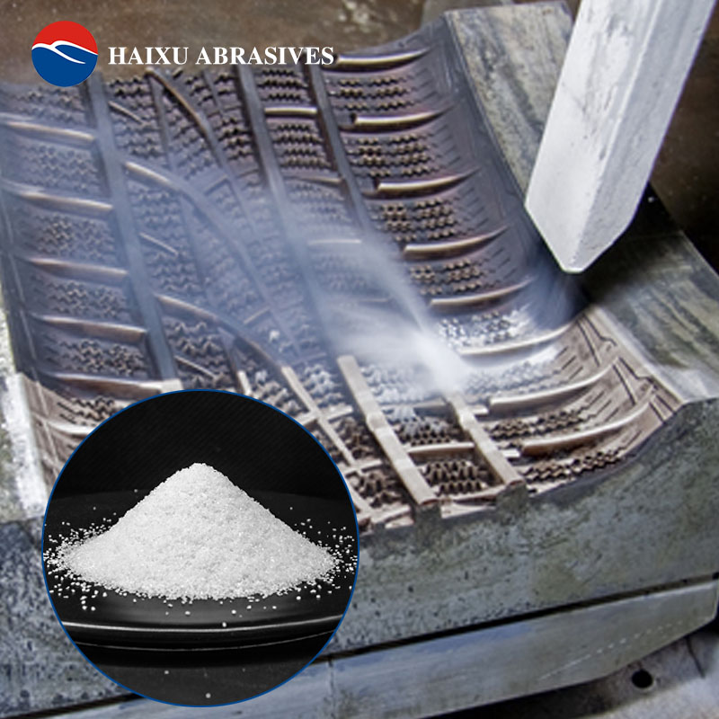 白剛玉的主要成分是三氧化二鋁,莫氏硬度9.0,維氏硬度22-24Gpa,在各種磨料中排在金剛石、碳化硼、碳化硅之后。同時,白剛玉磨料的韌性又比碳化硅高,研磨金屬和鋼材時不容易破碎。在模具鋼的加工過程中,無論是在噴涂底漆后還是在高溫退火后,都可以輕松地去除模具鋼表面地附著物和氧化層。另外,用白剛玉進行噴砂處理后,鋼材表面不會產(chǎn)生磁性物殘留。白剛玉噴砂后模具鋼的表面粗糙度增加,有利于提高后道噴漆涂料的附著力,提高耐用度、硬度和抗腐蝕度。最后,白剛玉的純凈度高,可以用于與食品接觸的模具、醫(yī)藥行業(yè)的設(shè)備、航天領(lǐng)域器件的噴砂,不會對模具產(chǎn)品污染。