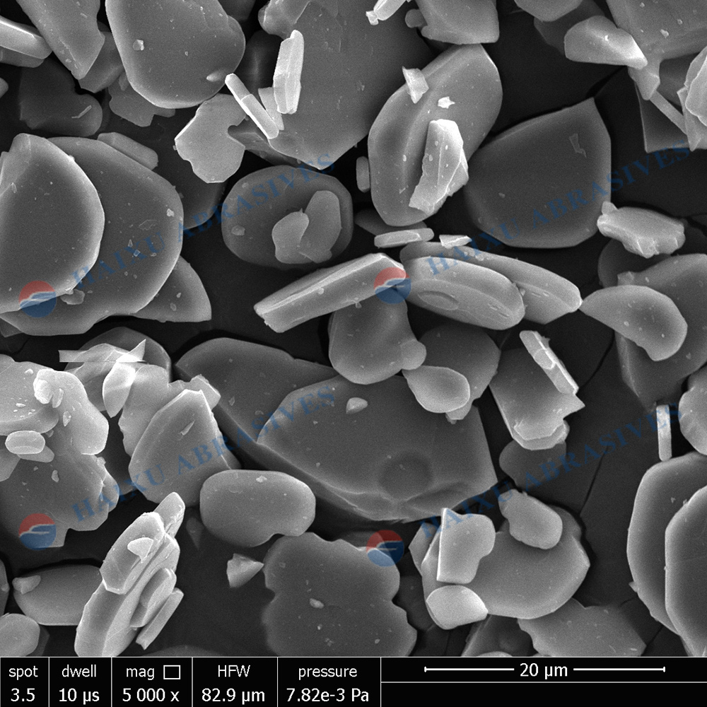 其晶體形狀為六角平板狀,區(qū)別于傳統(tǒng)磨料的等積型或球形,這種形狀使磨料顆粒在研磨運(yùn)動中平行于被加工工件表面,產(chǎn)生滑動的研磨效果,而非傳統(tǒng)磨料的滾動研磨,因而不容易對工件表面產(chǎn)生隨機(jī)劃傷。同時,由于研磨壓力是均勻分布在平板狀磨粒表面,顆粒破碎減少,耐磨性大幅提高,因而能提供最佳的磨削效率和表面光潔度。實(shí)驗(yàn)表明,平板狀氧化鋁微粉的研磨去除度可以提高10-20%,能夠?qū)崿F(xiàn)快速研磨和拋光。